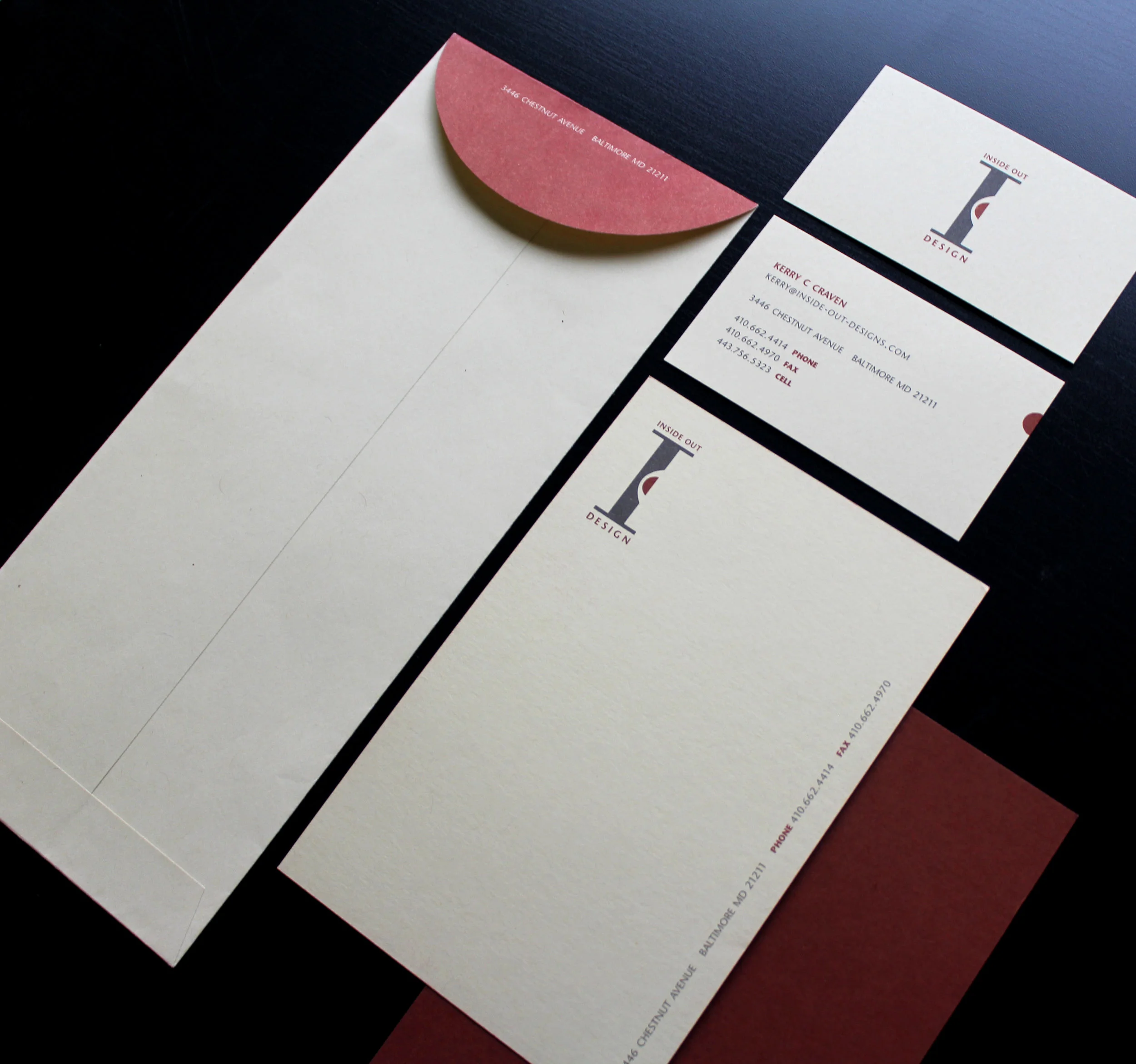 Inside Out Design, a full-service, interior design firm in Baltimore needed a new identity. The branding was to be applied not only to printed and electronic marketing materials, but to the interior space of the new offices. By focusing on two unusual colors and simple typography, m design was able to bring the company to life. The paper choices for stationary and matching interior office design combined to form a strong, effective and memorable brand identity for this company.